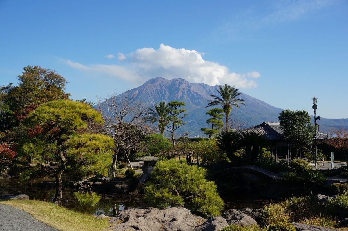 ”仙厳園”(磯庭園)、島津家の別邸として築かれ、雄大な桜島が借景となっています。