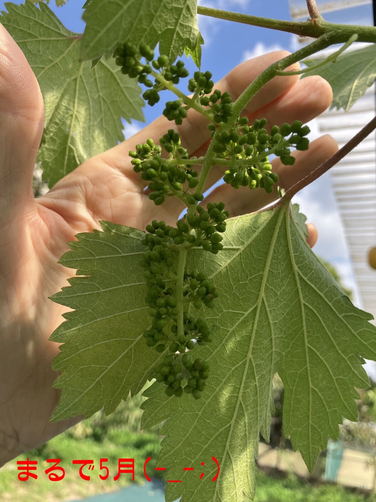 ブドウに実がついていました。(;^_^A